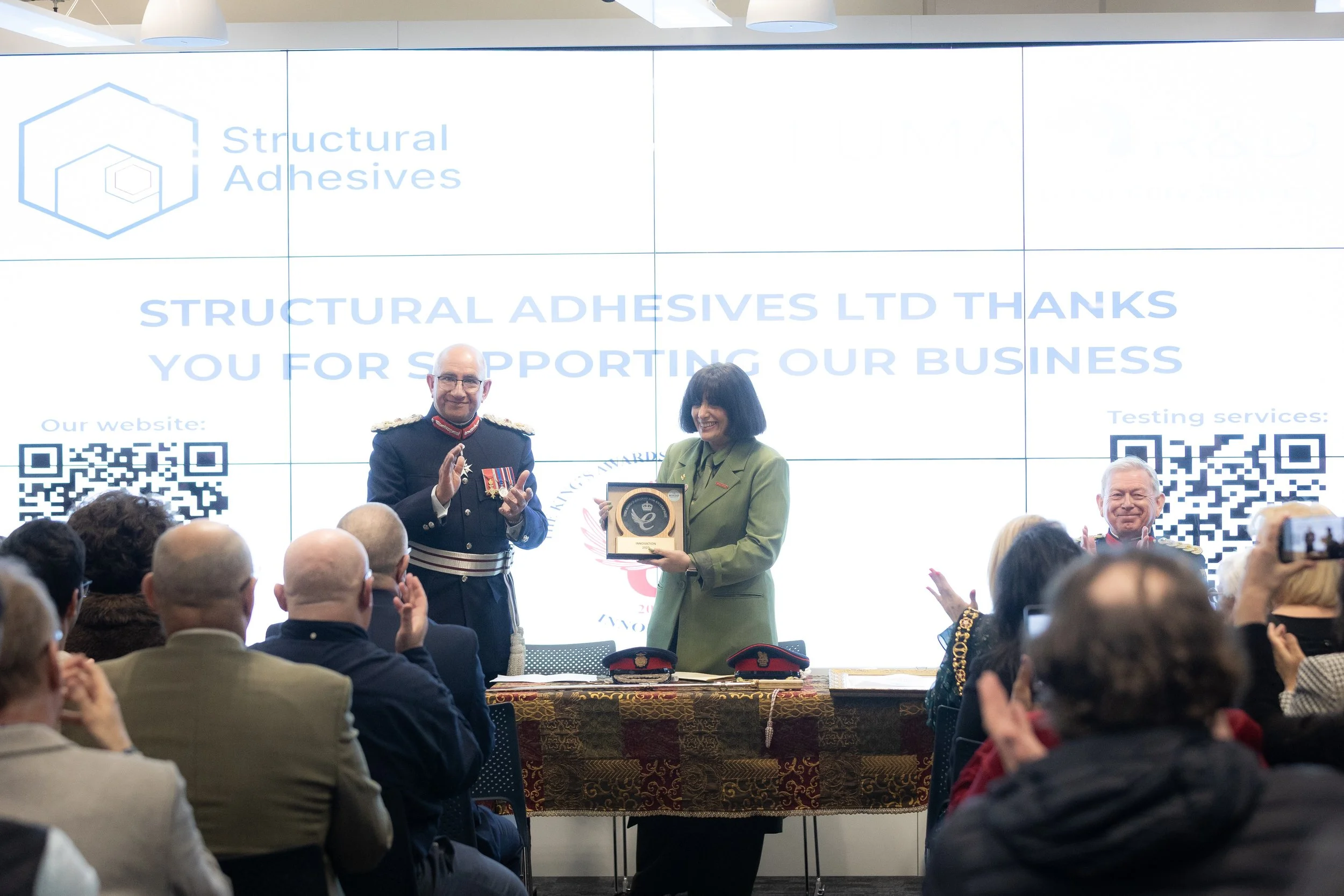 We were proud to be invited to the presentation evening for the King's Award for Enterprise by Structural Adhesives Limited who had received the award for the development of their A2 reaction to fire adhesives.
